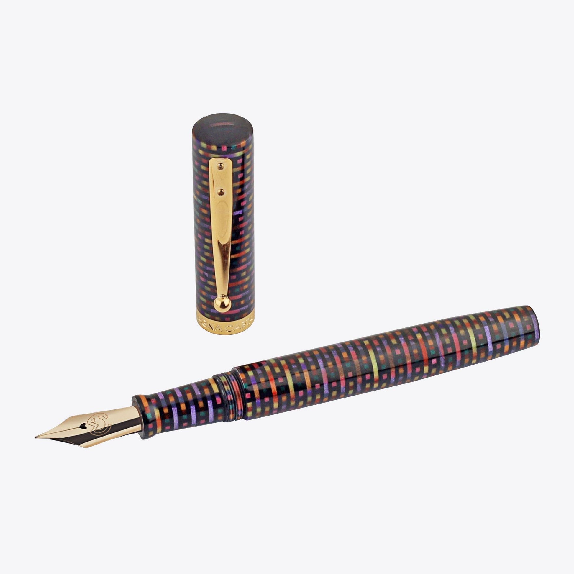 The Magna Carta Mag 600 luxury fountain pen is a true writer's delight. It is crafted with Artisan resin and sporting a 24K PVD gold plated trim. It's dimensions provide a comfortable and balanced grip.